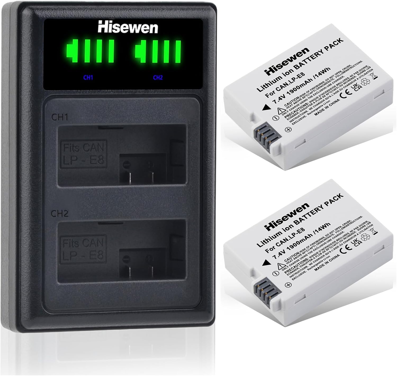 Este kit incluye 2 baterías LP-E8 junto con un cargador dual USB diseñado para cámaras Canon EOS compatibles.